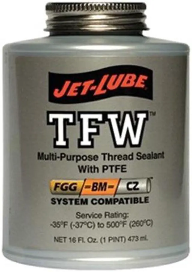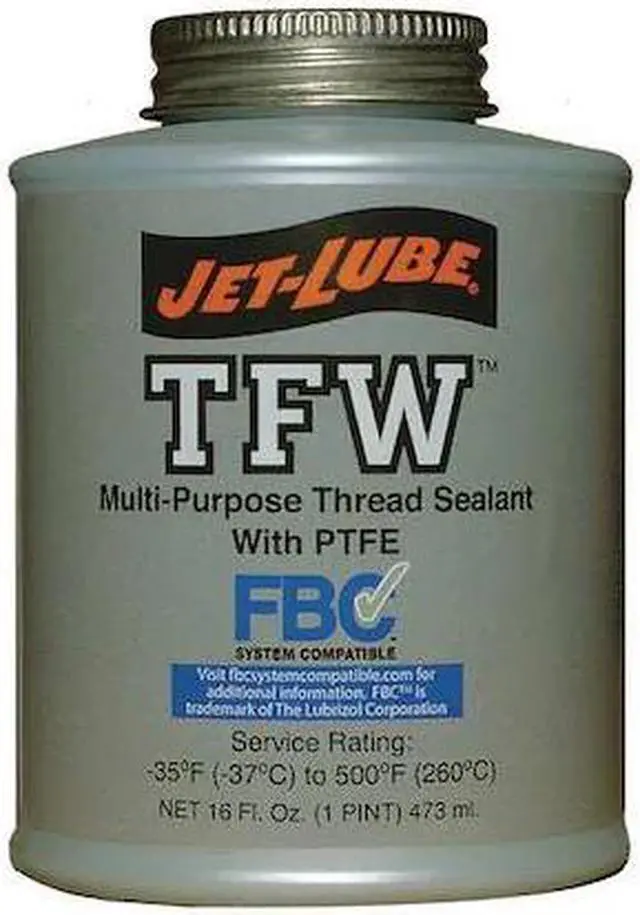 Pipe Thread Sealant, Cure Type Non-Hardening, Series TFW, Container Size 16 fl oz, Container Type Brush-Top Can, Maximum Operating Temperature 500 Degrees F, Minimum Operating Temperature -35 Degrees F, Maximum Operating Pressure for Gases 2, 000 psi, Maximum Operating Pressure for Liquids 10, 000 psi, Color White, For Fluid Type Gases, Potable Water, For Material Type ABS, CPVC, PVC. This item has been restricted from sale in the following state (s): []