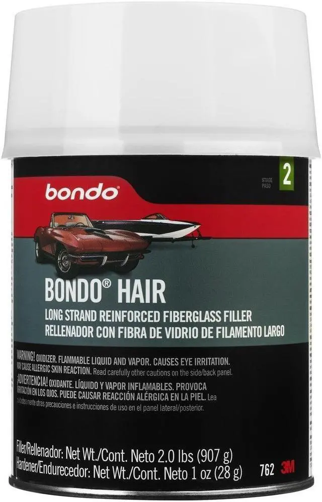 Bondo-Hair is formulated with long strands of chopped fiberglass for twice the strength of a regular body filler. Recommended for use on up to 1-inch rust holes, shattered fiberglass and dents where extra strength is required.
