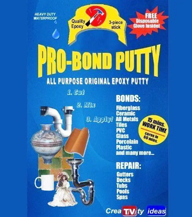 Pro-Bond Epoxy Putty 3 Tubes. All-purpose original epoxy putty heavy-duty marine-grade extra-strong epoxy putty sticks that bond to metals wood concrete glass and most plastics. Just cut mix and apply!