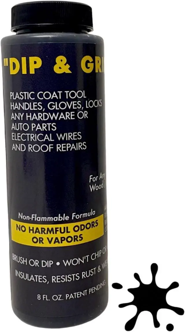 Liquid Leather - Dip and Grip (Black) is the perfect coating for all hand tool grips! Plastic coat tool handles gloves locks and hardware or auto parts Dip And Grip is as simple as it sounds! Just dip the handle of any hand tool in Dip And Grip and it applies a rubberized plastic coating. Brush or dip won't chip or crack. Dip And Grip can also be used to repair broken wires coat battery cables and identify machinery. Hundreds of other uses around the home and for your vehicles. This is for Dip and Grip in the color BLACK.