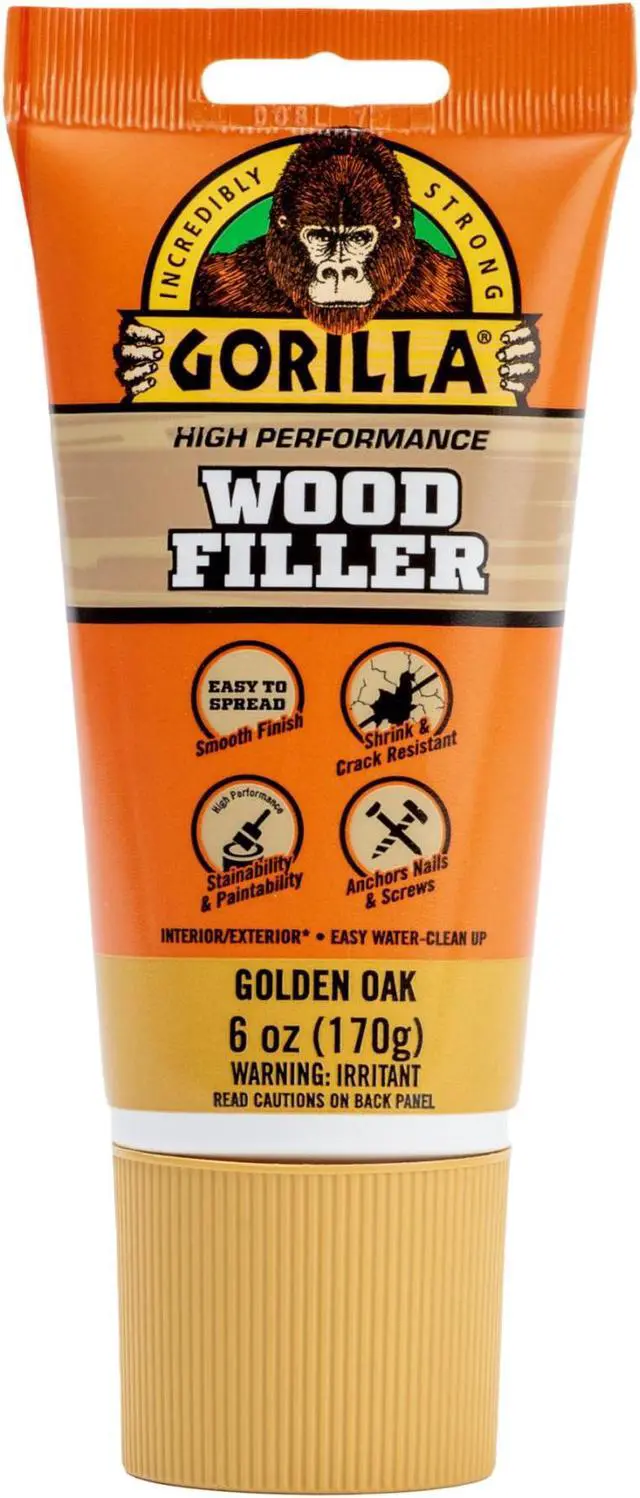 • Gorilla High Performance Wood Filler is the go to product for strong, durable repairs on cracks, gouges and holes.