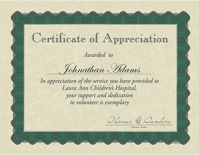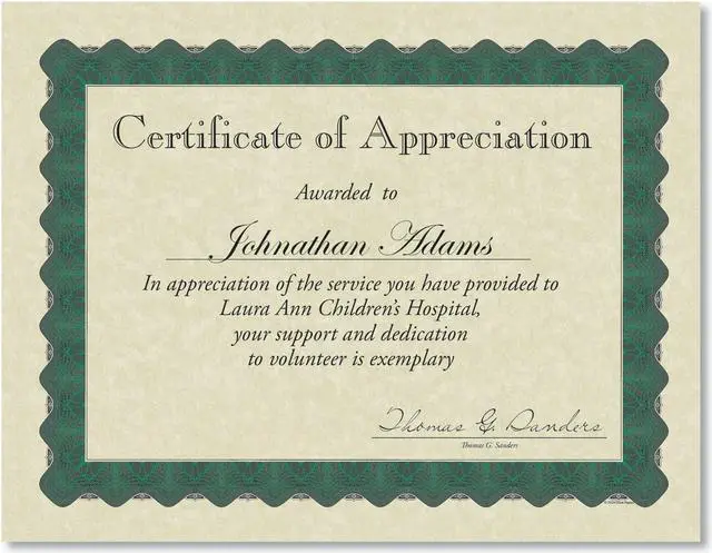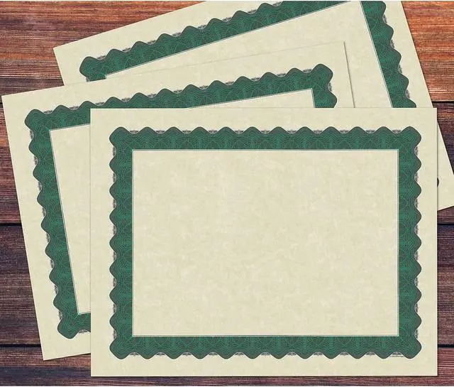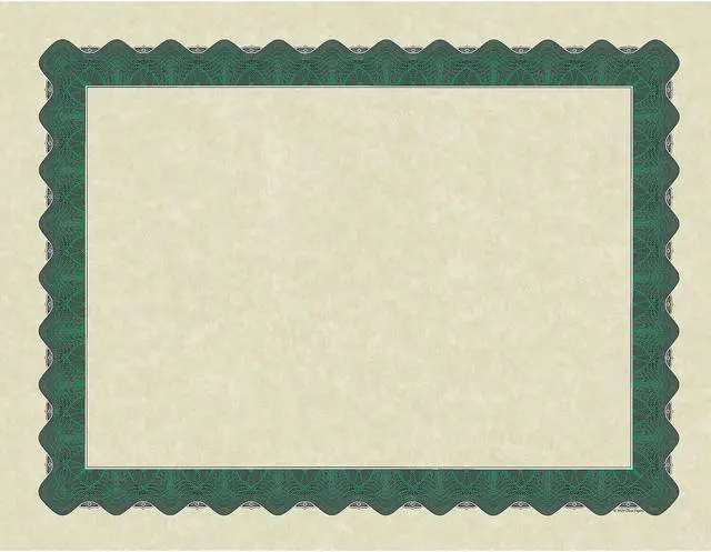 Create professional documents for graduation ceremonies, awards, and contest winners by printing custom designs on these parchment-patterned certificates. The delicate metallic green border on each of these certificates adds a special touch to the 60-pound paper stock, calling attention to recognized achievements. This pack contains 100 blank Great Papers Masterpiece Studios parchment certificates, which are compatible with both inkjet and laser printers.