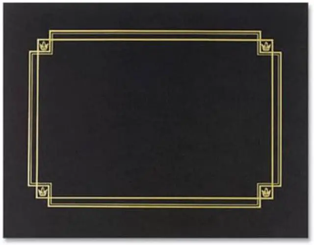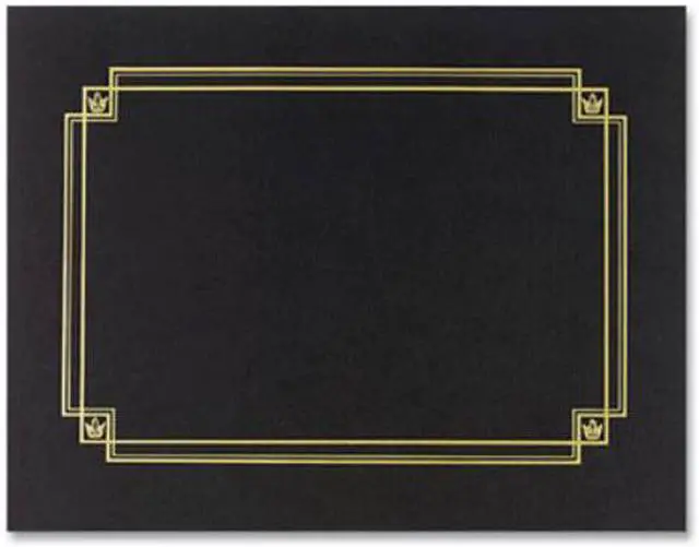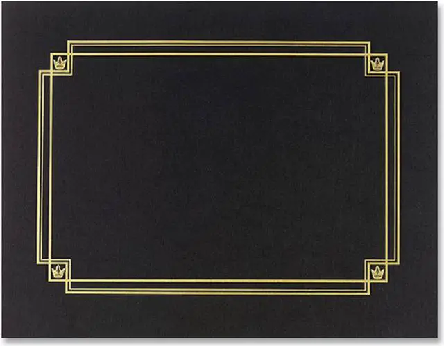 Great Papers Linen certificate cover in black color measures 12 13/20" x 9 3/4" and features embossed gold foil. Cover is die-cut to hold any certificates and is acid as well as lignin free, sold as 3 per pack.