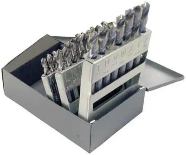 Screw Machine Drill Bit Set, Number of Drill Bits 26, 118 Degrees Drill Bit Point Angle, High Speed Steel, Bright (Uncoated), Drill Bit Sizes Included A, B, C, D, E, F, G, H, I, J, K, L, M, N, O, P, Q, R, S, T, U, V, W, X, Y, Z, Letter, Drill Bit Point Type Conventional Point. This item has been restricted from sale in the following state (s): []