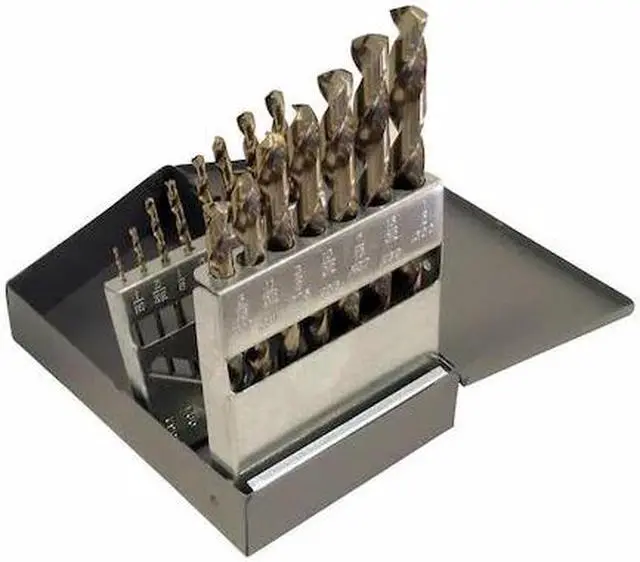 Jobber Length Drill Bit Set, Number of Drill Bits 15, Drill Bit Point Angle 135 Degrees, Material - Machining Cobalt, Finish - Machining Straw/Bronze. This item has been restricted from sale in the following state (s): []