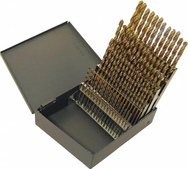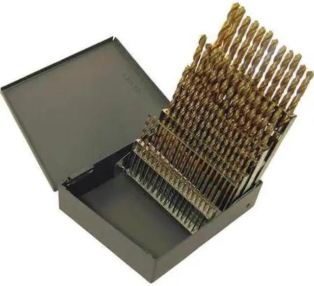 Jobber Length Drill Bit Set, Number of Drill Bits 60, Drill Bit Point Angle 135 Degrees, Material - Machining High Speed Steel, Finish - Machining TiN. This item has been restricted from sale in the following state (s): []