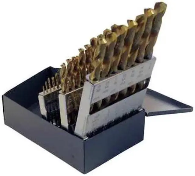 Jobber Length Drill Bit Set, Number of Drill Bits 29, Drill Bit Point Angle 135 Degrees, Material - Machining High Speed Steel, Finish - Machining TiN. This item has been restricted from sale in the following state (s): []