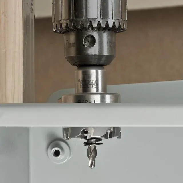 This carbide hole cutter cuts quick, precise holes in a variety of materials. Integrated flange prevents the operator from drilling beyond the sheet metal. Split point pilot drill bit prevents bit walking.