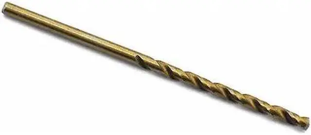 Bit features a split point. Jobber Drill Bit, Fractional Inch, Drill Bit Size 3/32 In., Decimal Equivalent 0.0936, Drill Bit Point Angle 143 Degrees , Drill Bit Material Cobalt Steel, Drill Bit Finish Straw/Bronze, Coolant Through No, Cutting Direction Right Hand, Overall Length 2-1/4 In., Shank Dia. 3/32 In., Flute Length 1-1/4 In., Point Type Conventional Point, List Number E0101805-G This product contains a chemical that is regulated under California Proposition 65. Warning: This product contains a chemical known to the State of California to cause cancer. -