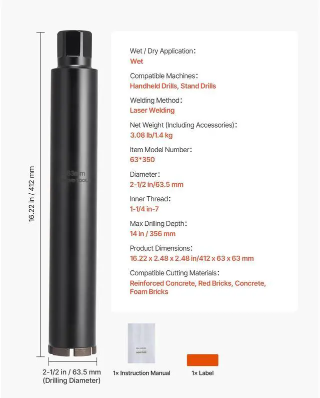 Compatible Cutting Materials: Reinforced Concrete, Red Bricks, Concrete, Foam Bricks