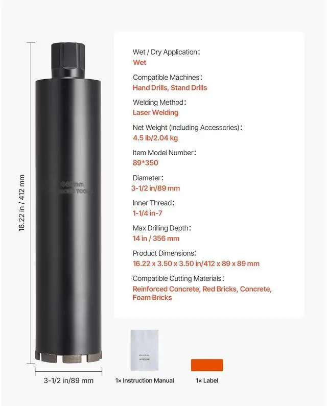 Compatible Cutting Materials: Reinforced Concrete, Red Bricks, Concrete, Foam Bricks