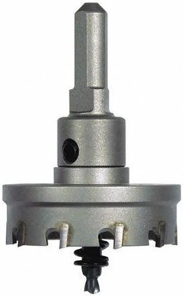 Morse, CTS54 (166454), 3-3/8" (86mm) diameter, carbide tipped hole cutter is designed for cutting precision holes in sheet metal applications, such as control panels and electrical boxes. Ground tooth profile provides clean, fast cuts. Step center pilot drill reduces "break through" impact. Sholdered cutter body prevents pass through, protecting electrical components at shallow depths. Ejector spring aids in slug removal. One (1) cutter per box. Replacement parts, CTSP (166010) pilot drill and CTSS (166027) ejector spring.