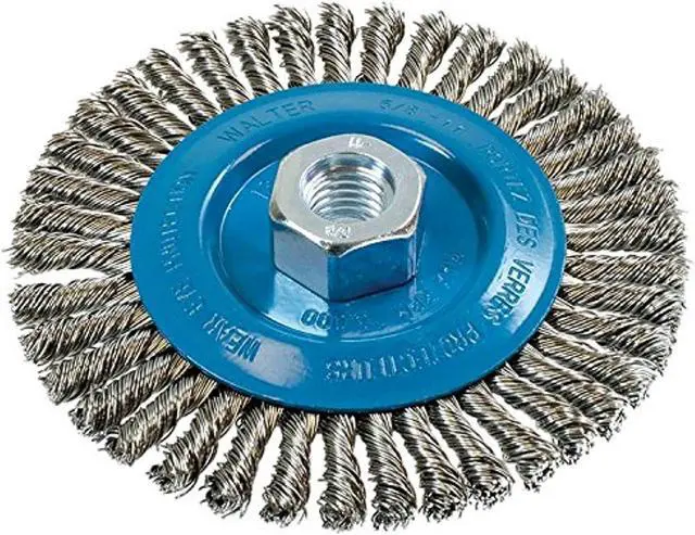 Stringer Bead Wire Wheel Brush by Walter helps carry out quicker and safer brushing operations on the metallic surfaces. Knot-twisted wire brush features superior quality oil hardened and tempered steel wires to ensure efficient and smooth cleaning of steel surfaces. Ensuring the complete safety of operators, this wheel brush can be conveniently mounted to the angle grinders. This steel brushing action can also be employed for cleaning pipe weld and removing surface contaminants.