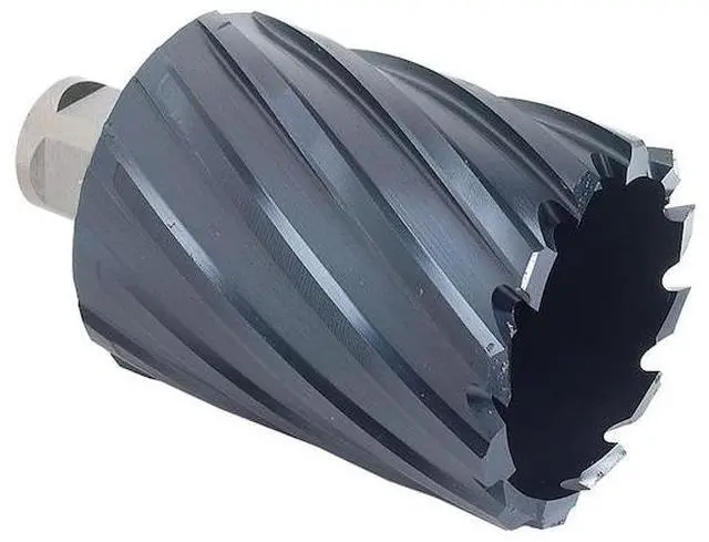 The new ICECUT annular cutters are coated with an exclusive mixture of chromium and aluminum AICrN and are designed to be used where lubricants are not permitted or problematic to apply. This new technology outperforms any Titanium TiN or Titanium-Aluminum TiAIN coating cutters. By incorporating a chromium aluminum blend into the coating. Walter ICECUT annular cutters can withstand at least 200 degrees Celsius higher temperatures and produce less heat than a conventional TiAIN cutter. This exclusive coating makes the ICECUT more resistant to higher stress under load and instant impact.