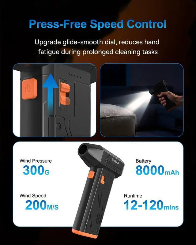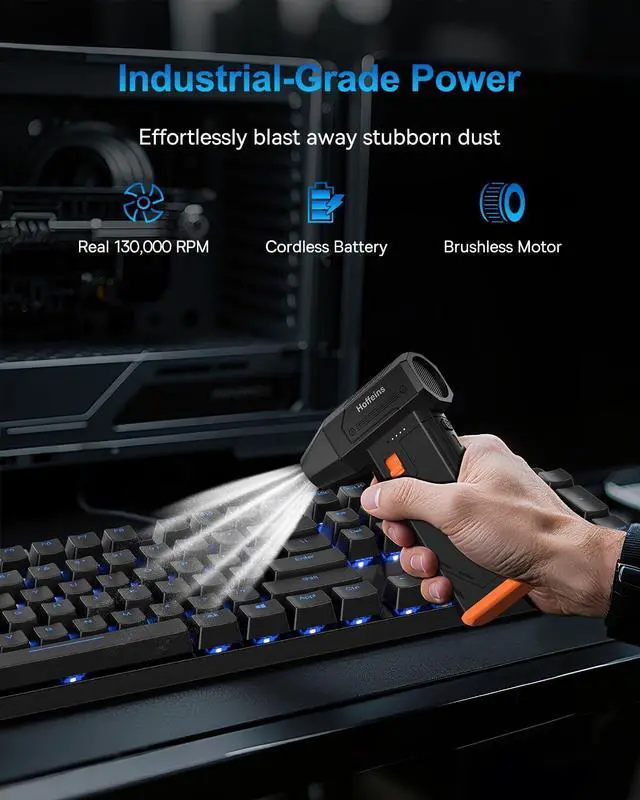 Real 130,000 RPM Industrial-Grade Power: Effortlessly blast away stubborn dust from keyboards, PC vents & car seats 3X stronger than canned air. Tackle pet hair in car carpets & crumbs in deep seat gaps with surgical precision