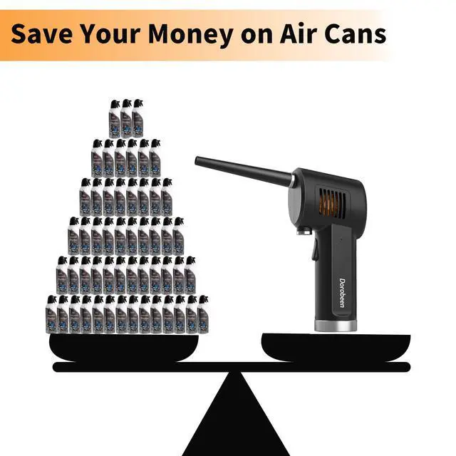 The electronic air duster will not produce liquid and will not cause damage to your electronic components. It can be recharged and used, It is a choice to save money and protect the environment.