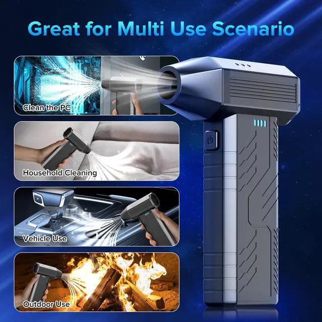 The portable air duster will help you easily clean corners or place where hand cannot reach. you can use it in a variety of scenarios: Keyboards, computer case, car seats and so on. Great to help you deep cleaning printed circuit boards, computers, Camera, electronic products, traditional wipers or Instruments and medical equipment.