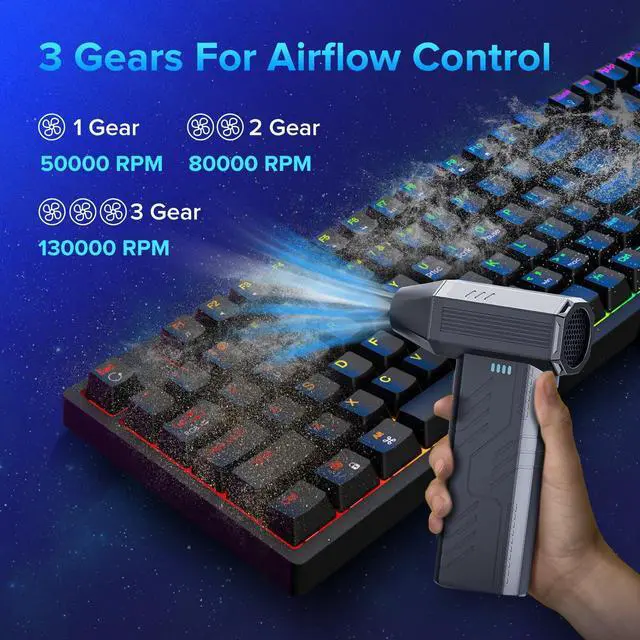 Cordless air duster adopts physical dust removal design, does not contain any chemical agent, will not cause any harm to your body, is safer and more environmentally friendly. Re-use after charging, more comfortable/cost-effective than constantly buying canned air