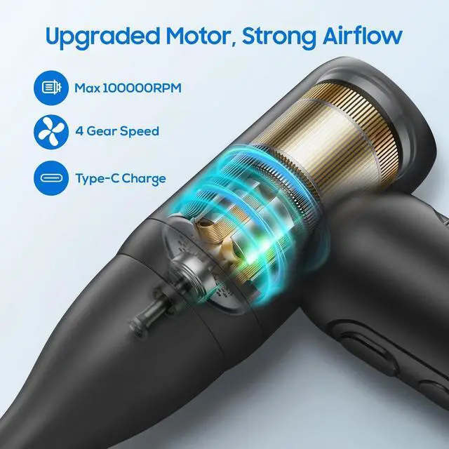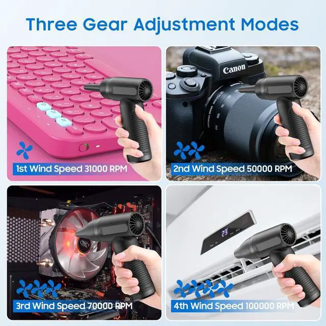 Compressed air Duster4 Gear Adjustable 100000RPM Electric air Duster, Cordless air Blower for Laptop, Keyboard, Electronics, Replaces Compressed Air Can