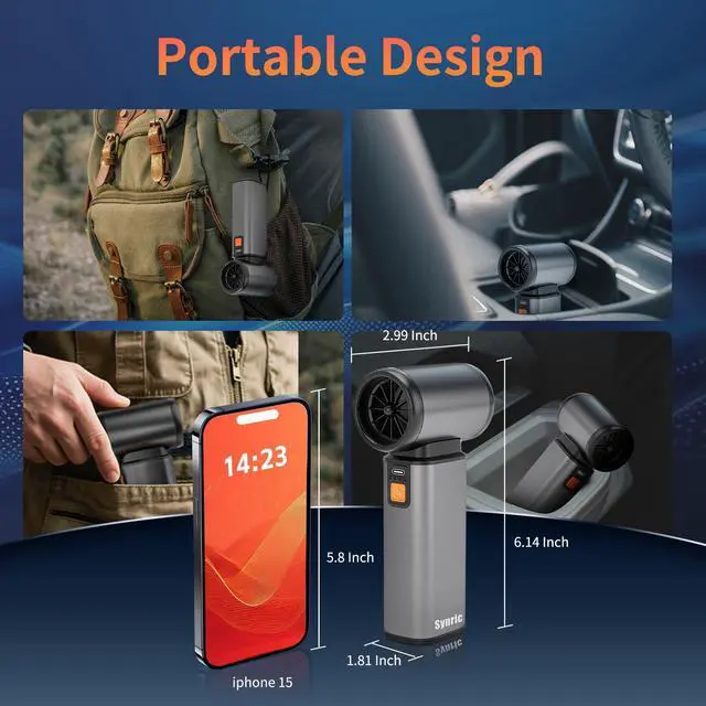 Power Brushless MotorSynric electric a ir duster uses a 120,000 RPM brushless motor to generate up to 190g wind pressure . The stepless speed control allows instant transition between delicate keyboard cleaner and compressed air duster. Engineered for safety-first performance, its integrated safety protocols instantly disengages power during thermal overload or voltage spikes