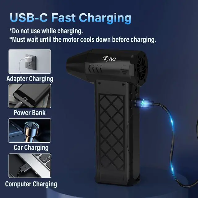 Tackle dust anywhere with the IVJ Cordless compressed air duster, offering relentless power and the flexibility of 4 speed modes for any task. Say goodbye to wasteful cans and hello to quick recharging and a lightweight tool that makes cleaning effortless. Make the green switch: one IVJ duster replaces hundreds of disposable cans, drastically reducing your carbon footprint and landfill waste. Protect your investments while doing a world of good for the planet with this superior, sustainable cleaning tool.