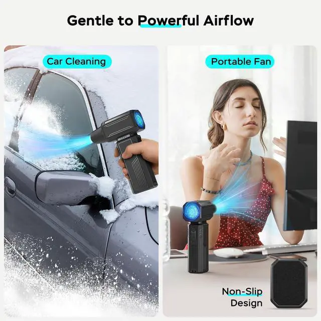 - [Cost-effective and Portable]Unlike compressed air cans,this jet fan eliminates the need for disposable products during cleaning,protecting your electronic devices and saving you money over time.It's a one-time investment that meets all your daily cleaning needs.Its portable,cordless design and compact size make it easy to carry anywhere,even fitting into your pocket, simplifying your dusting tasks.