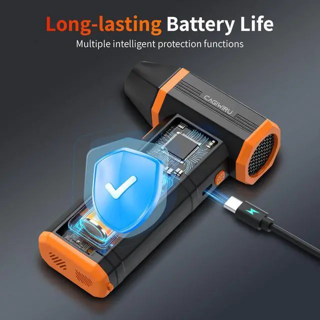 Upgraded High-Capacity Battery & Fast Charging The rechargeable air dusters have built-in 7500mAh batteries, which provide enough power for long hours of use. These batteries are temperature, current, and short-circuit protected, so the fan air speed will not decrease even after prolonged use. At the same time, they support fast charging and have a Type-C connector, making them compatible with a variety of charging methods, including charging from a car or mobile power source.