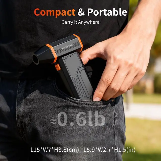 Compact and LightweightThe electric air duster weighs about 280g and is palm-sized, so it can be easily held in one hand, and the powerful jet function blows away dust effortlessly. Easy to store and carry, it brings much convenience.