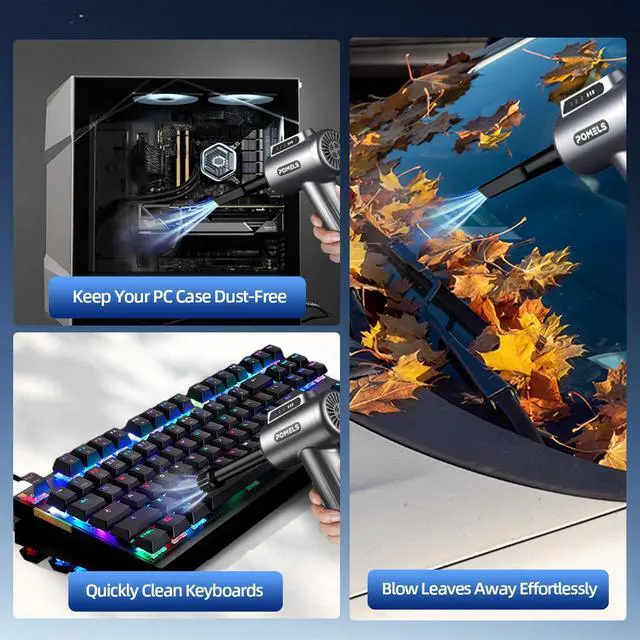 Powerful Airflow for Deep Cleaning Deliver ultra-strong airflow up to 110,000RPMthis electric air duster easily removes dust from keyboards, laptops, cameras, and car vents. A perfect compressed air alternative, ideal for cleaning sofas, window tracks, and hard-to-reach corners without pressure loss.