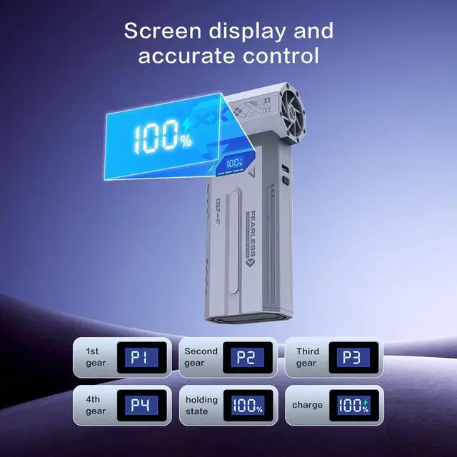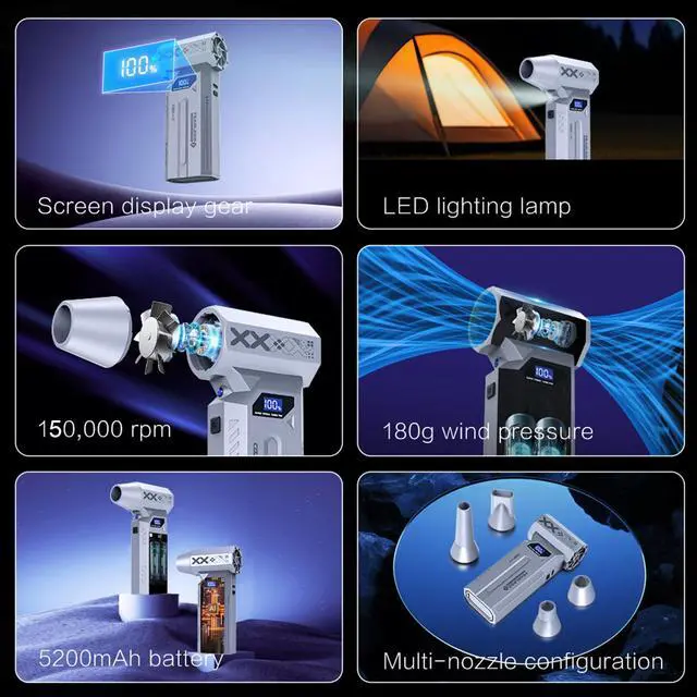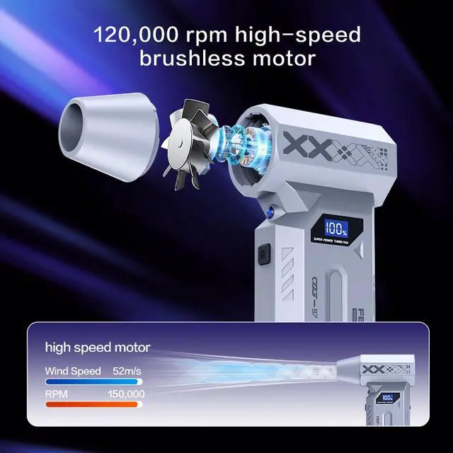 Powerful Electric Air DusterCompressed Air Duster Upgraded Brushless Motor for Instant Dust Removal: Equipped with a high-performance Powered by a robust 150,000 RPM brushless motor, this air duster delivers 180G blowing force and 52 m/s maximum wind speedeffortlessly blasting away stubborn dust and debris. electric air duster 4 adjustable speed settings adapt to all cleaning tasks, from delicate electronics to heavy-duty debris.