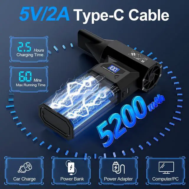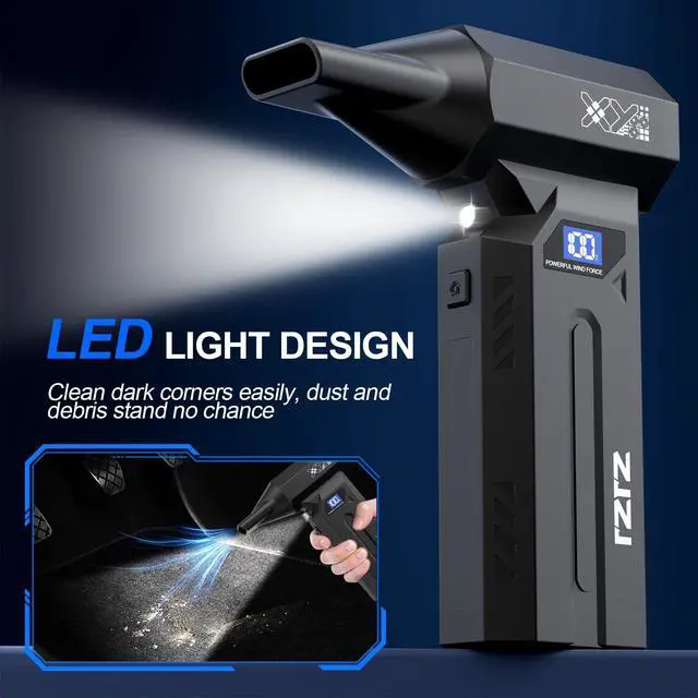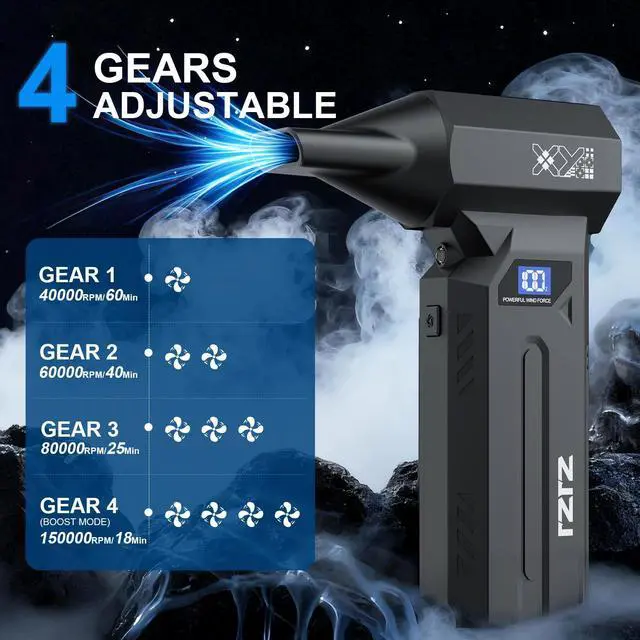 Super Power Turbo FanThis electric air duster is equipped with a high-speed brushless motor that can reach a maximum speed of 150000 RPM. It features four adjustable wind speed settings, with the maximum reaching 65 m/s. Its powerful wind force effortlessly removes dust and debris from keyboards and electronic devices. This handheld air blower is an ideal cleaning tool for homes, offices, or cars