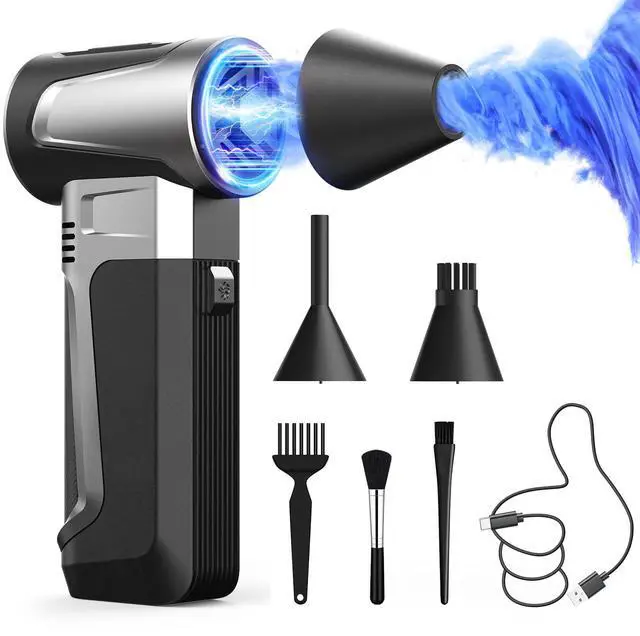 • Powerful Compressed Air DusterThis electric duster reaches a max speed of 160,000 RPM, effectively removing dust from hard-to-reach areas like keyboards and delicate electronics. Included nozzles and soft brushes ensure thorough, damage-free cleaning of computer towers and sensitive devices.