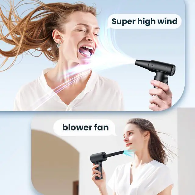 Mini air blowereasy to carry, fits in pocket blower fan only have1.35*5.9 Inch, 0.5lb air duster fits in your pocket without any stressis easy to carry and used indoors and outdoors. Mini blower Light weight and more comfortable user experience.
