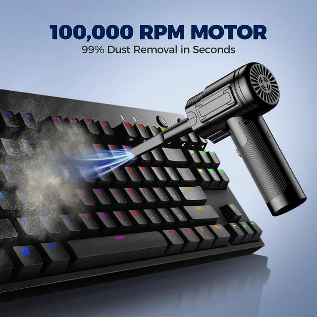 LED light-The rechargeable air duster designed for deep cleaning, the built-in LED light illuminates your cleaning area upon activation
