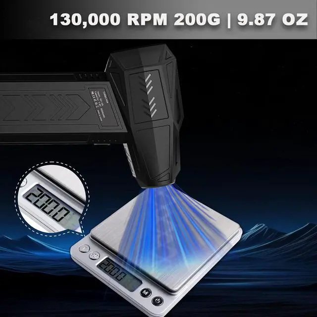 It can be recharged and reused, replacing the traditional disposable compressed air can, more economical. It is small and easy to carry, and can even be carried in your pocket. 130000RPM brushless motor has strong explosive power.