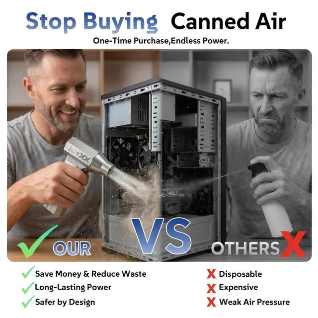 Eco-Friendly & Cost-Saving ChampionA one-time purchase that saves you hundreds on disposable air cans! It provides dry, chemical-free air, protecting your gadgets and our planet. The smart, sustainable choice for every home and office.