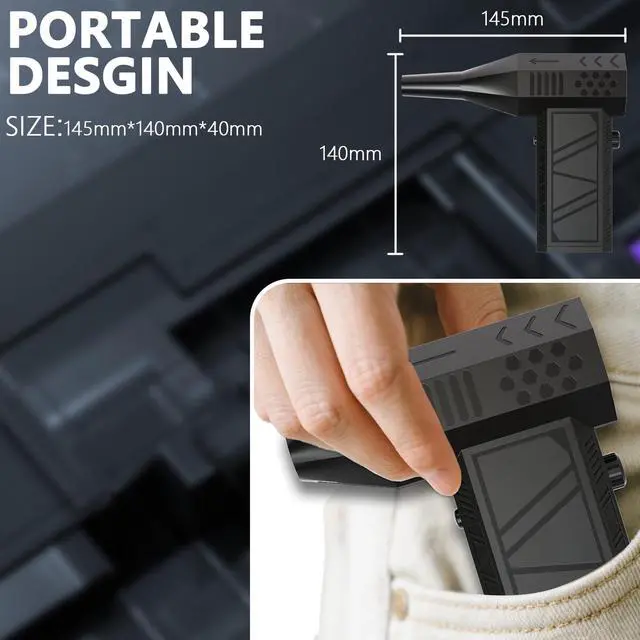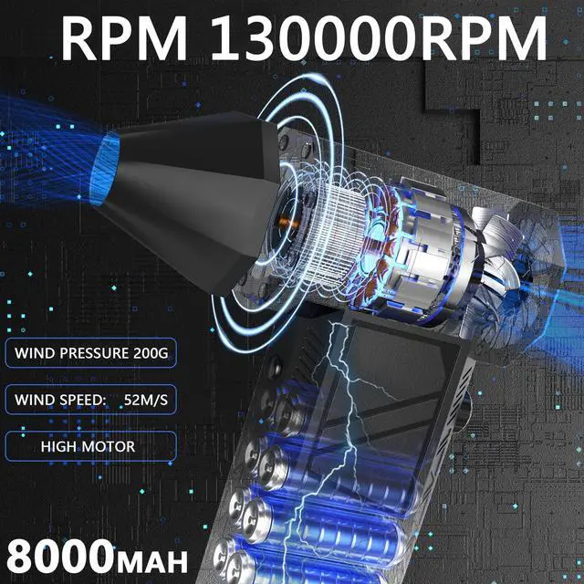 The maximum wind speed of our air gun is 13,000 RPM. You can adjust it to your desired speed by turning the rotating knob on the blower gun body