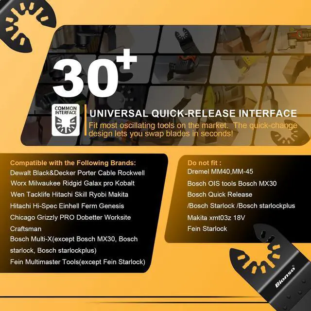 With universal interface design, it is compatible with more than 95% of the oscillating tools on the market.