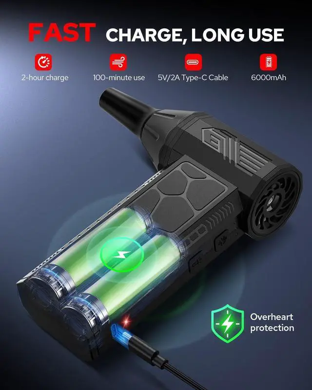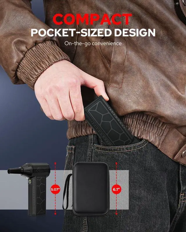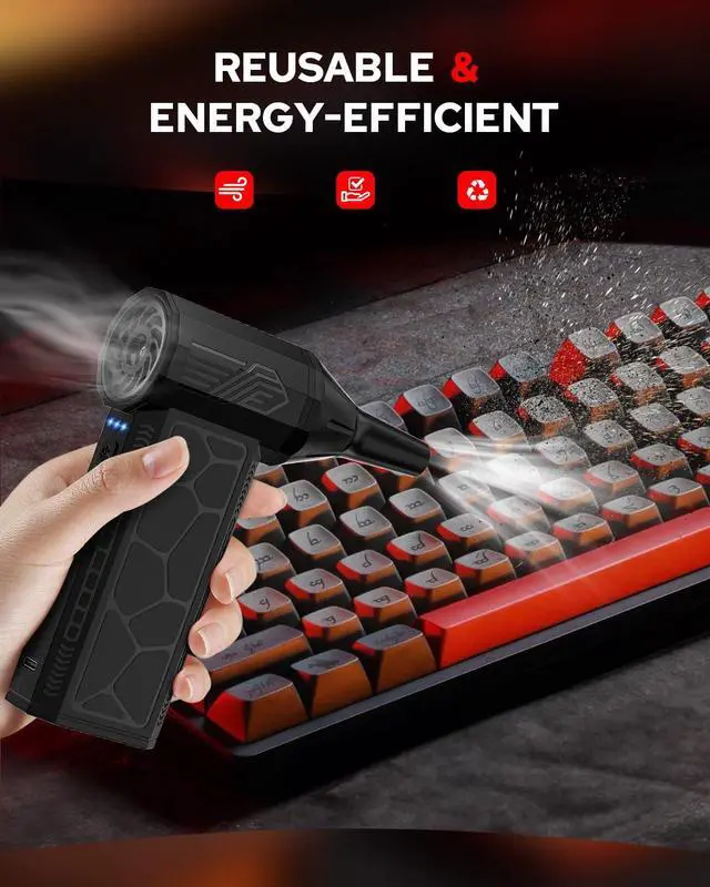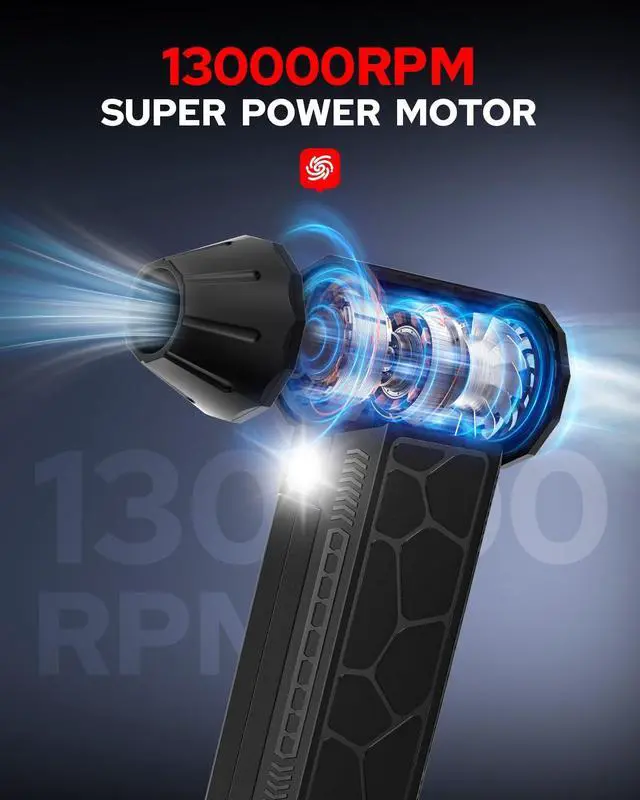 Benlari Air Duster:The cordless handheld fan is small and exquisite, compact and lightweight, easy to carry. The fan is made of ABS and metal materials, simple design, reasonable structure, powerful performance, better practicality, wider application scenarios.Adopting low noise and high speed brushless motor, the maximum output speed can reach 130,000 rpm, which can provide strong blowing power. Strong wind design,Key on/off, easy and convenient operation, perfect dust removal effect.