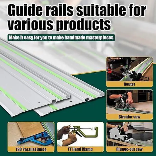 Versatile: 110-inch track saw guide Perfectly compatible with Festool track saw guide accessories such as FT handle clamps, TSo parallel guides and more.Perfectly compatible with Festool TS-55/TS75/TS-60 track saws,Packing list: 55in track saw guide rail x 2 Guide Rail Connector x2