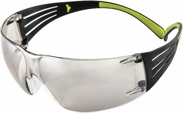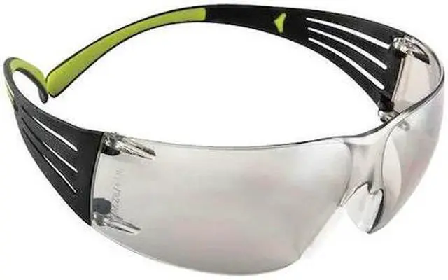 Safety Glasses, Series 400, Gender Unisex, Lens Color Gray Mirror, Polarized Lens No, Lens Coating Anti-Scratch, No Foam Lined, Eyewear Frame Design Wraparound, Eyewear Frame Style Frameless, Frame Color Black, Eyewear Size M, Frame Material Plastic, Lens Material Polycarbonate, Temple Color Black/Neon, Temple Style Adjustable, Photochromatic Lens No, Metal Detectable No, X-Ray Detectable No, UV Protection 99.9 Percent, Includes SecureFit (TM) Protective Eyewear, Standards ANSI Z 87.1 -2010