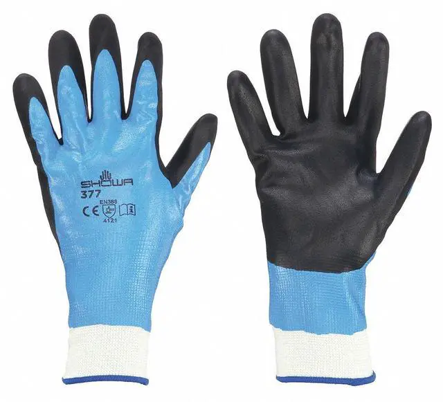 California Proposition 65: This product contains a chemical known to the State of California to cause cancer. The Showa Nitrile-Coated General-Purpose Gloves provide the protection, dexterity and grip that are ideal for landscaping, engine work and more. These gloves feature a high abrasion resistance while the thin nitrile coating offers limited protection against a wide range of chemical substances. The black nitrile-coated foam overdip on the palm gives you excellent grip even while working on oily applications. Elastic knit wrist holds each glove firmly in place.