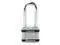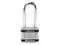 Padlock, Shackle Dia. 3/8 in, Shackle Height 2 1/2 in, Shackle Width 15/16 in, Shackle Material Boron, Body Height 1 45/64 in, Body Width 2 in, Body Thickness 1 in, Body Material Stainless Steel, Number of Bumpers 2, Number of Pins 4 Pin, Key Type Different, Control Key Registration Required No, Opens with Key No. Varies, For Use With Lockout/Tagout, Security, Body Color Silver, Body Dia. 2 in, Body Finish Laminated, Keyway Type Master K1, Weather Resistant Yes, High Security No