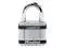 Padlock, Shackle Dia. 3/8 in, Shackle Height 1 in, Shackle Width 15/16 in, Shackle Material Boron, Body Height 1 45/64 in, Body Width 2 in, Body Thickness 1 in, Body Material Stainless Steel, Number of Bumpers 2, Number of Pins 4 Pin, Key Type Different, Control Key Registration Required No, Opens with Key No. Varies, For Use With Lockout/Tagout, Security, Body Color Silver, Body Dia. 2 in, Body Finish Laminated, Keyway Type Master K1, Weather Resistant Yes, High Security No