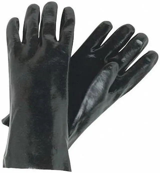 Chemical Resistant Gloves, PVC, Fully, Not Rated, 12 in, Cuff Gauntlet, Lining Interlock, Glove Size L, Color Black, Supported, Resists Light Chemical,