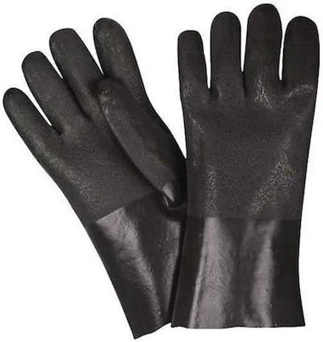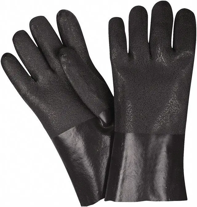 Chemical Resistant Gloves, PVC, Fully, Not Rated, 12 in, Cuff Gauntlet, Lining Jersey, Glove Size L, Color Black, Supported, Resists Abrasion, Chemicals, Oils,