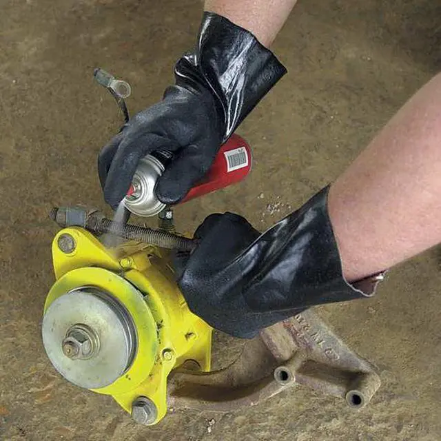 Chemical Resistant Gloves, PVC, Palm and Fingers, 45.0 mil, 14 in, Cuff Gauntlet, Lining Interlock, Glove Size L, Color Black, Unsupported, Resists Abrasion, Chemicals, Oils,