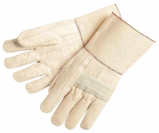 Heat Resistant Gloves, Material Cotton, Fabric Weight 24 oz., Max. Temp. 300 Degrees F, Cuff Gauntlet, Size Men's L, Color White, Length 12-1/2 In., Lining Cotton, Thumb Style Straight, Coating Uncoated, Application Heat Resistant, 1 Pair