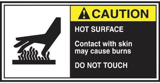 CEMA Label, Horizontal Rectangle, Number of Printed Sides 1, English, Sign Format ANSI/OSHA Format, Sign Legend Hot Surface Contact With Skin May Cause Burns Do Not Touch, Sign Legend Background Color Black, White, Sign Legend Style Symbol and Text, Package Quantity 5. This item has been restricted from sale in the following state (s): []