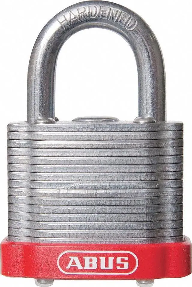 A tough lock for use in harsh conditions, the ABUS 41 Eterna™ laminated steel padlock is made with high-quality recycled steel laminates that are individually coated with weather-resistant nonhazardous cadmium-free plating. This gives the lock a high level of rust resistance. It is constructed with a hardened bottom steel plate and other features to resist picking and physical attack. Lockout Padlock, KD, MK, Red, 1-3/8"H